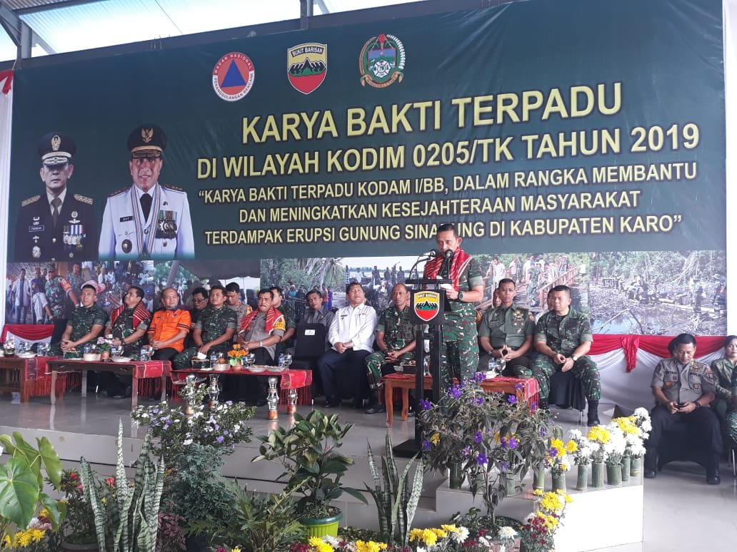 “Karya bakti TNI terpadu yang kita laksanakan ini merupakan bentuk kerjasama antara TNI dengan pemerintah daerah dengan menggabungkan program karya bakti TNI dengan program rehabilitasi dampak erupsi gunung sinabung yang merupakan program BPBD Provinsi Sumut,” tambahnya.