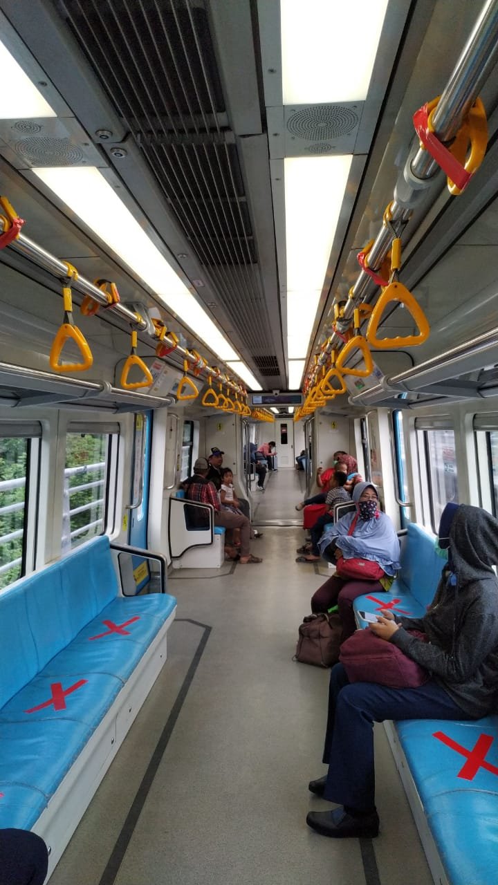 “Selain di stasiun, social distancing ini juga dilakukan di dalam kereta LRT Sumsel, dengan memberikan jarak tempat duduk serta pegangan tangan antar penumpang,” paparnya.
