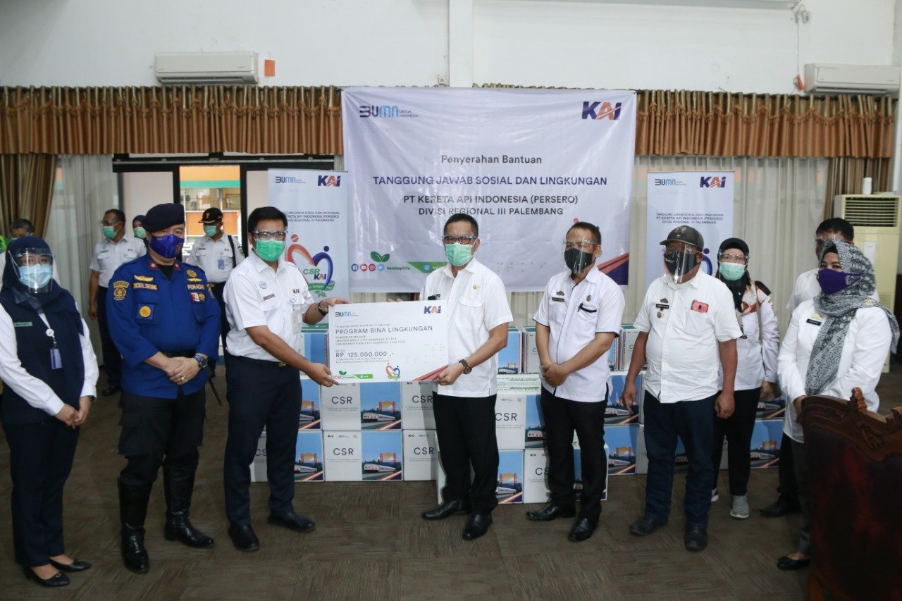 Manager Humas Divre III Palembang, Aida Suryanti menjelaskan, bantuan berupa masker senilai total Rp 410 juta tersebut, merupakan bagian dari program Tanggung Jawab Sosial dan Lingkungan / CSR yang dilakukan KAI.