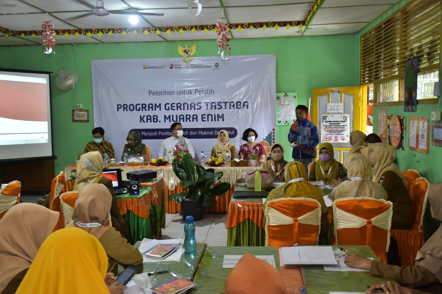 MATTANEWS.CO, MUARA ENIM – PT Bukit Asam Tbk (PTBA) melalui satker Sustainability berpartisipasi pada Gerakan Nasional Pemberantas Buta Membaca (Gernas Tastaba) dengan program pelatihan tenaga pendidik pada Sekolah Dasar/Madrasah Ibtidaiyah (SD/MI) di Kecamatan Lawang Kidul, Kabupaten Muara Enim, Senin (19/9/2022).