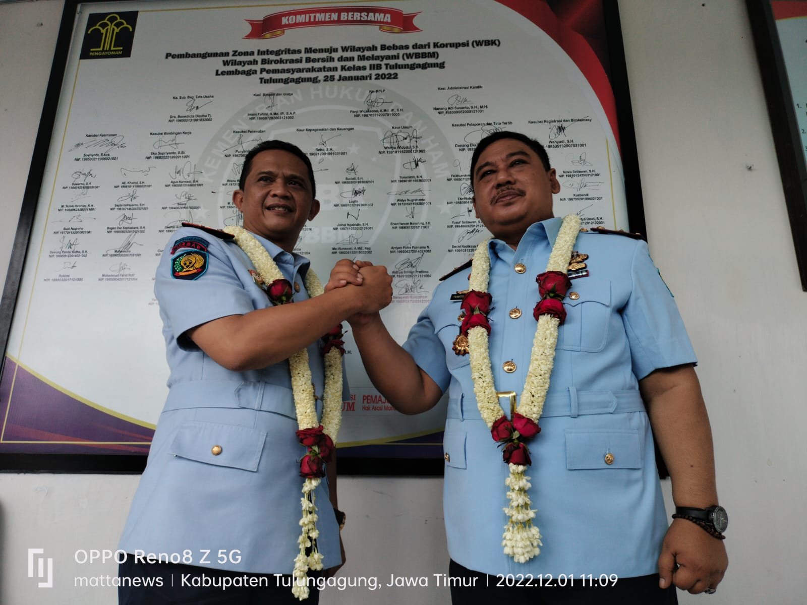MATTANEWS.CO,TULUNGAGUNG– Suasana haru mewarnai serah terima jabatan Kepala Lembaga Pemasyarakatan Kelas IIB Kabupaten Tulungagung bertempat di auditorium gedung R. Moestopo setempat, Kamis (1/12/2022).
