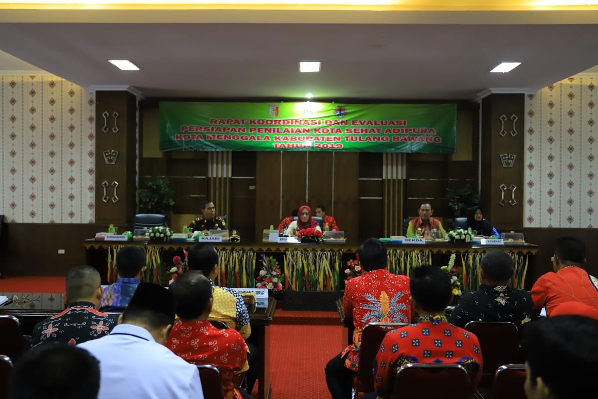 TULANGBAWANG, LAMPUNG, Mattanews.co – Rapat koordinasi dan evaluasi persiapan penilaian Kota sehat Adipura Kota Menggala Kabupaten Tulangbawang Tahun 2019 digelar di Lantai II Rupatama Kantor Bupati Tulangbawang, Kamis (17/10/2019).