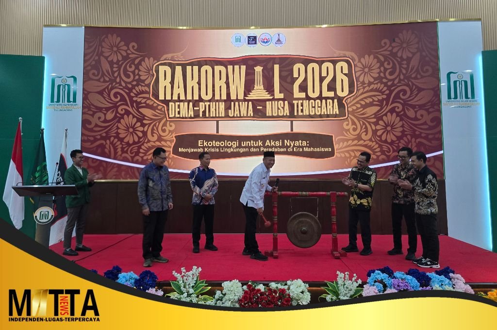 MATTANEWS.CO,TULUNGAGUNG — Rapat Koordinasi Wilayah (Rakorwil) Aliansi Dewan Eksekutif Mahasiswa Perguruan Tinggi Keagamaan Islam Negeri (DEMA PTKIN) se-Jawa–Nusa Tenggara resmi digelar di UIN Sayyid Ali Rahmatullah (UIN SATU) Tulungagung, Kamis (2/4/2026). Kegiatan ini menjadi forum strategis konsolidasi gerakan mahasiswa sekaligus penguatan jejaring kepemimpinan lintas kampus di kawasan Jawa hingga Nusa Tenggara.