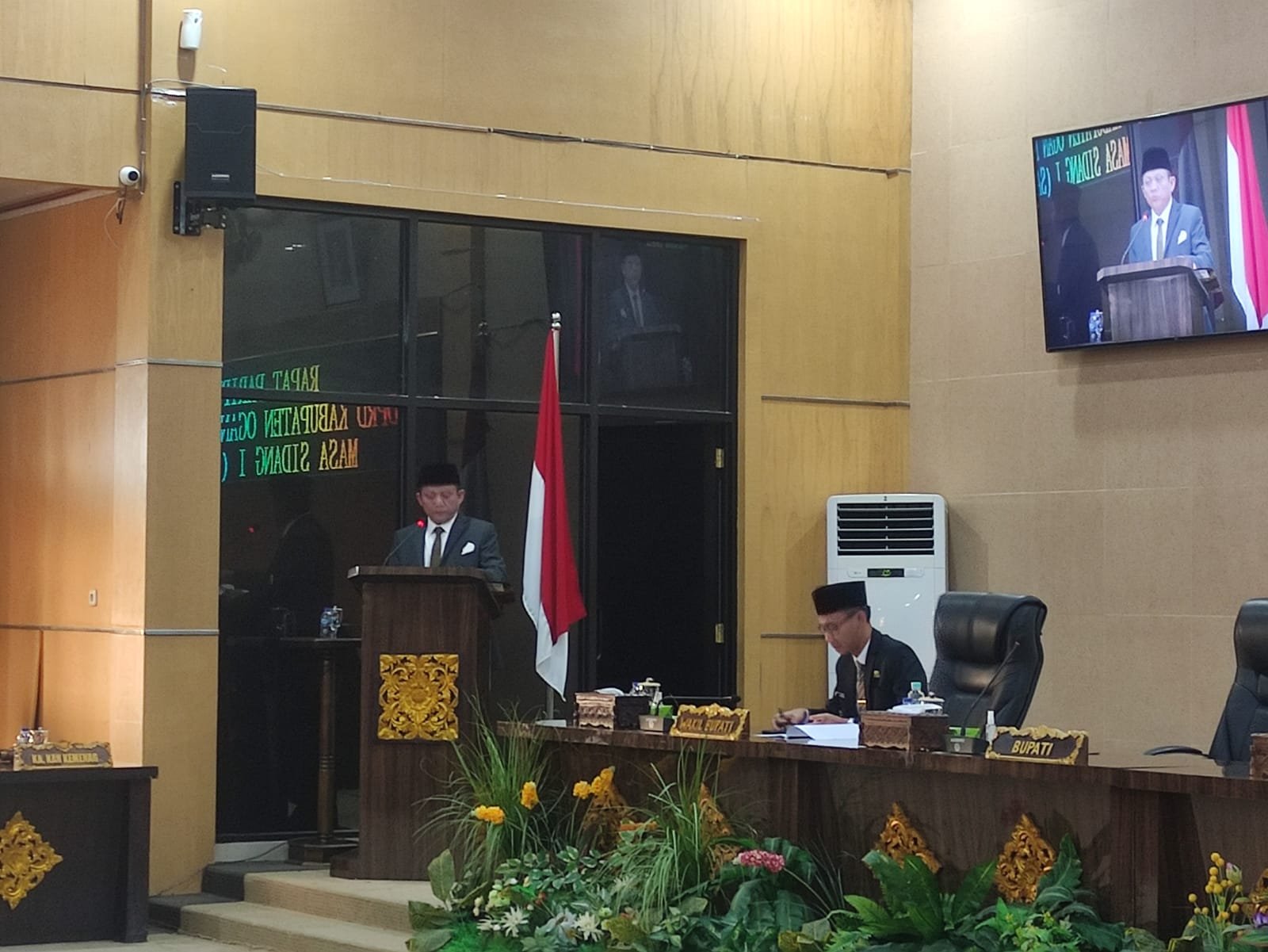 Rapat Dewan dibuka Ketua DPRD H. Beni Dafitson, S.IP., M.M. dihadiri Bupati dan Wakil Bupati Ir. H. Lanosin, S.T. dan H.M. Adi Nugraha Purna Yudha, S.H. diawal pembukaan rapat Bupati Enos membacakan kata pengantar nota perubahan keuangan dan rancangan peraturan daerah tentang perubahan APBD OKU Timur tahun 2022 .