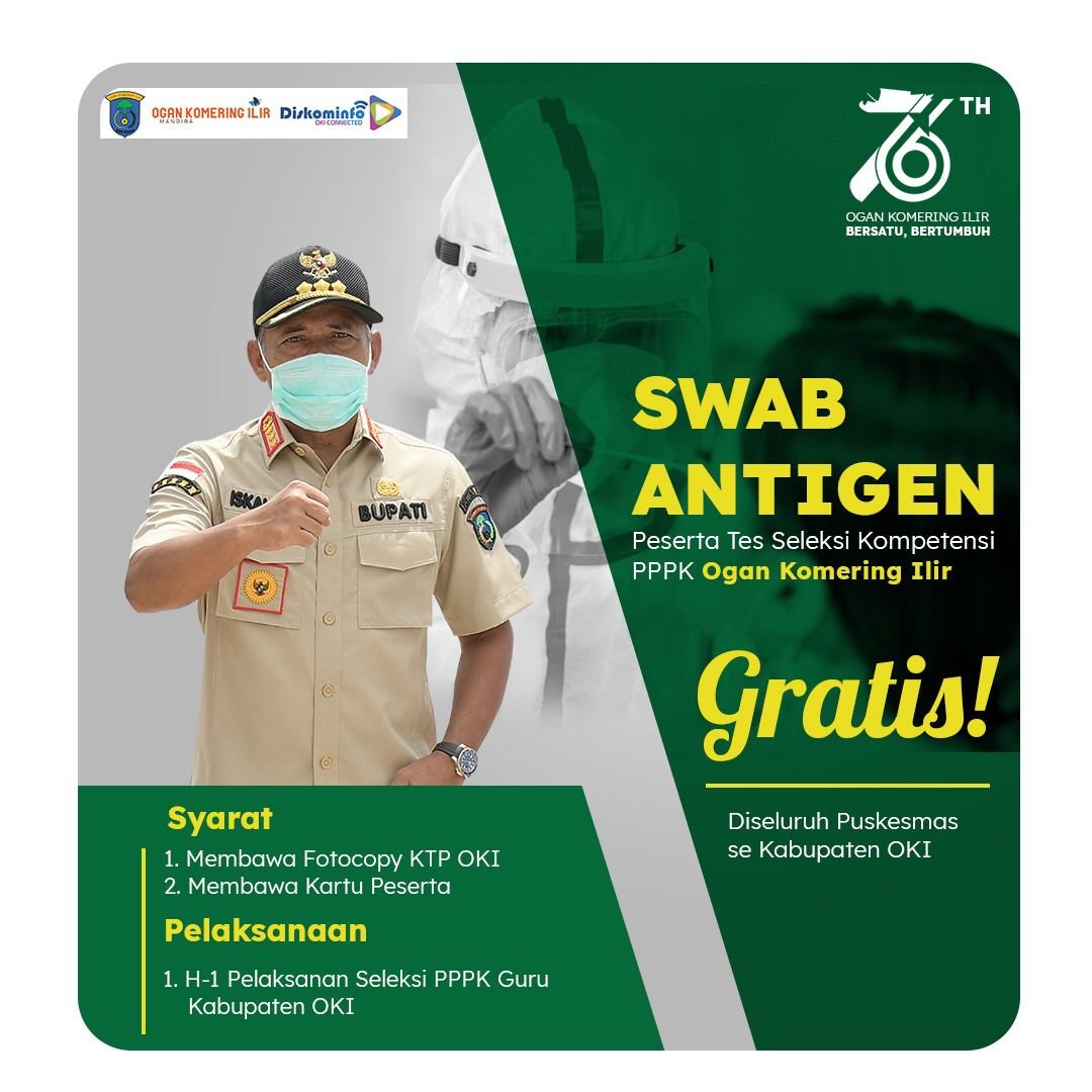 MATTANEWS.CO, OKI – Peserta seleksi Pegawai Pemerintah Perjanjian Kerja (P3K) diberikan Rapid antigen secara gratis. Fasilitas ini sendiri diberlakukan bagi 2.969 peserta formasi guru yang mengikuti seleksi di puskesmas terdekat. Selain itu, Pemerintah Kabupaten Ogan Komering Ilir menyiapkan posko di lokasi penyelenggaraan tes bagi peserta khusus diluar daerah yang hendak melakukan tes swab secara mandiri. Sedangkan seleksi tersebut diselenggarakan mulai dari tanggal 13 hingga 17 September mendatang.