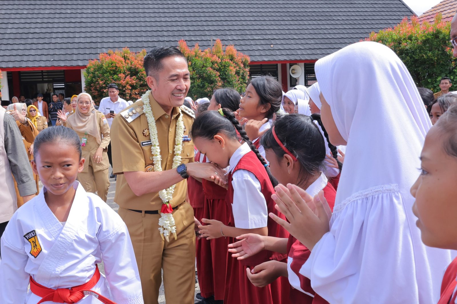 Kehadiran orang nomor satu di Palembang ini pun sontak saja membuat suasana sekolah menjadi heboh, begitu juga dengan masyarakat yang ingin foto bersama dengan Ratu Dewa.
