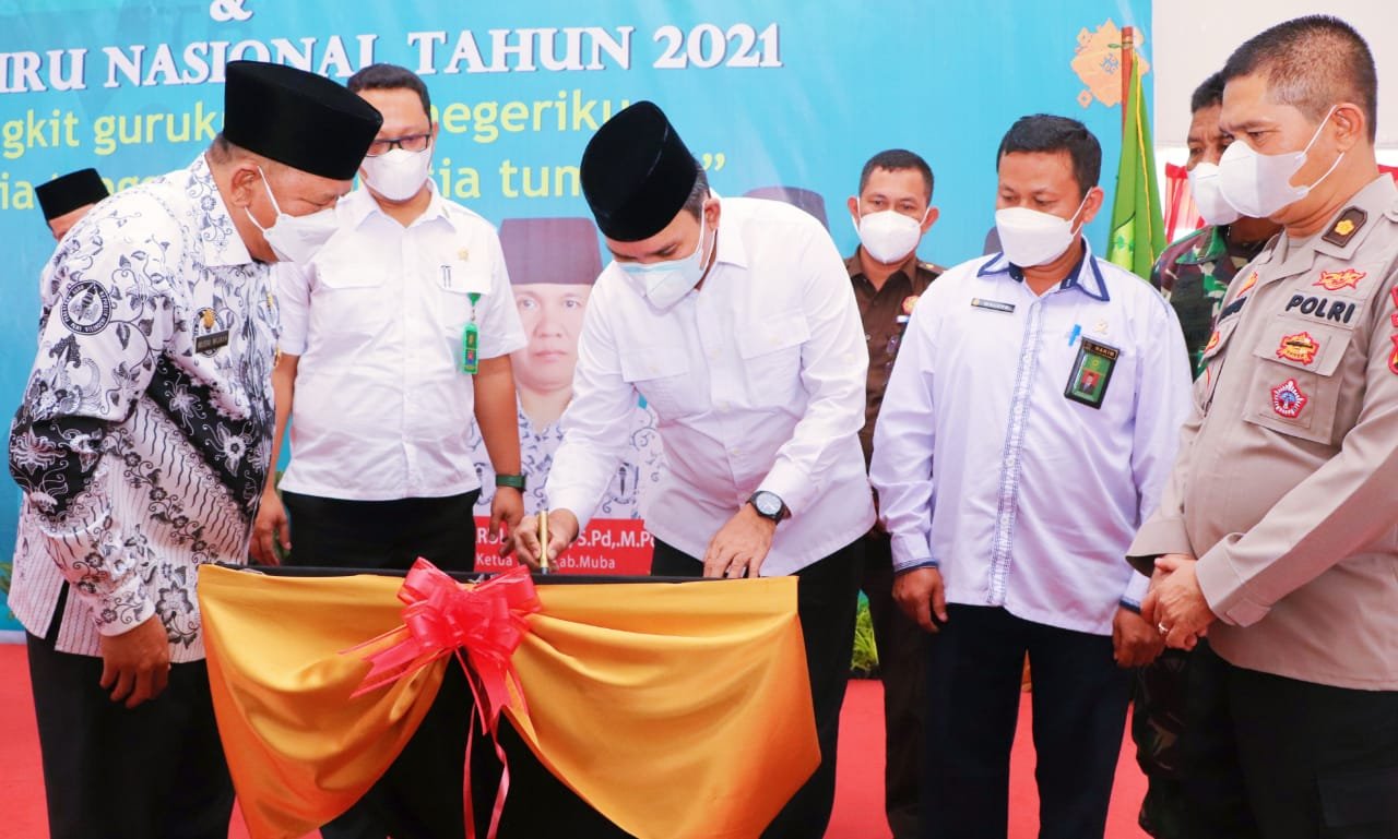 MATTANEWS.CO, MUBA – Peringatan Hari Ulang Tahun ke-76 Persatuan Guru Republik Indonesia (PGRI) dan Hari Guru Nasional (HGN) Tahun 2021 di Kabupaten Musi Banyuasin berlangsung semarak di Pendopoan Griya Bumi Serasan Sekate, Senin (13/12/2021).