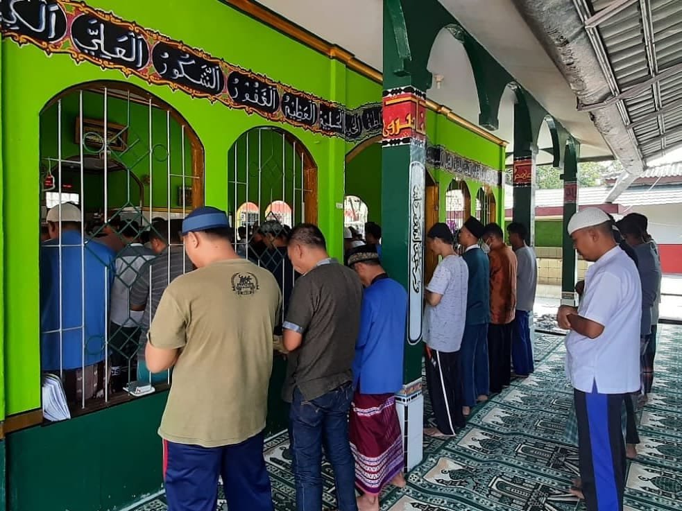 Ratusan warga binaan dan Pegawai Rutan Prabumulih menggelar Sholat Ghoib usai selesainya pelaksanaan sholat jum’at berjamaah di Masjid At-Taubah.