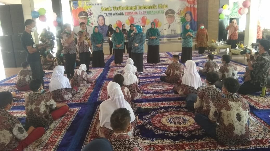 Lidyawati juga melakukan temu wicara bersama anak-anak berkebutuhan Khusus serta memberikan hadiah atau bingkisan pada anak anak SLB Lahat.