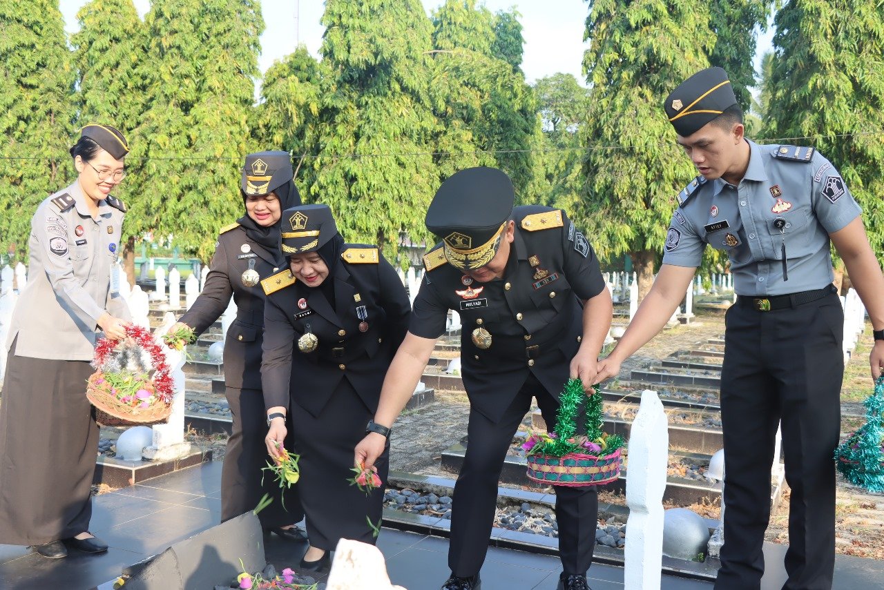 Mulyadi secara hidmat meletakkan karangan bunga di monumen TMP Ksatria Palembang sebagai wujud penghormatan dan penghargaan, didampingi Kepala Divisi Administrasi, Rahmi Widhiyanti, Kepala Divisi Pelayanan Hukum dan HAM, Ika Ahyani Kurniawati, dan Kepala Lapas Kelas I Palembang, Saverius Essau Gustaf Johannes yang menaburkan bunga di makam pahlawan.