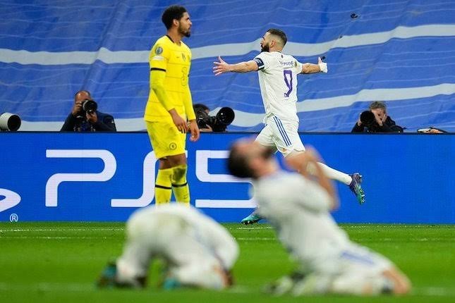 Madrid membobol gawang Chelsea melalui sundulan Benzema usai menerima umpan cungkil Vinicius Junior dan mengubah skor menjadi 2-3 pada menit ke – 96.