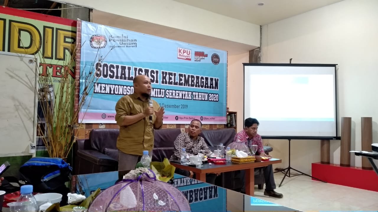 Hal ini disampaikan Kordiv Parmas dan Pendidikan Pemilih, KPU Provinsi Sulawesi Barat Adi Arwan Alimin, dalam kegiatan Sosialisasi Kelembagaan Menyongsong Pemilu serentak tahun 2020, tahapan Program dan jadwal penyelenggaraan Pilkada, di My Cafe Mamuju, Selasa (10/12/2019).