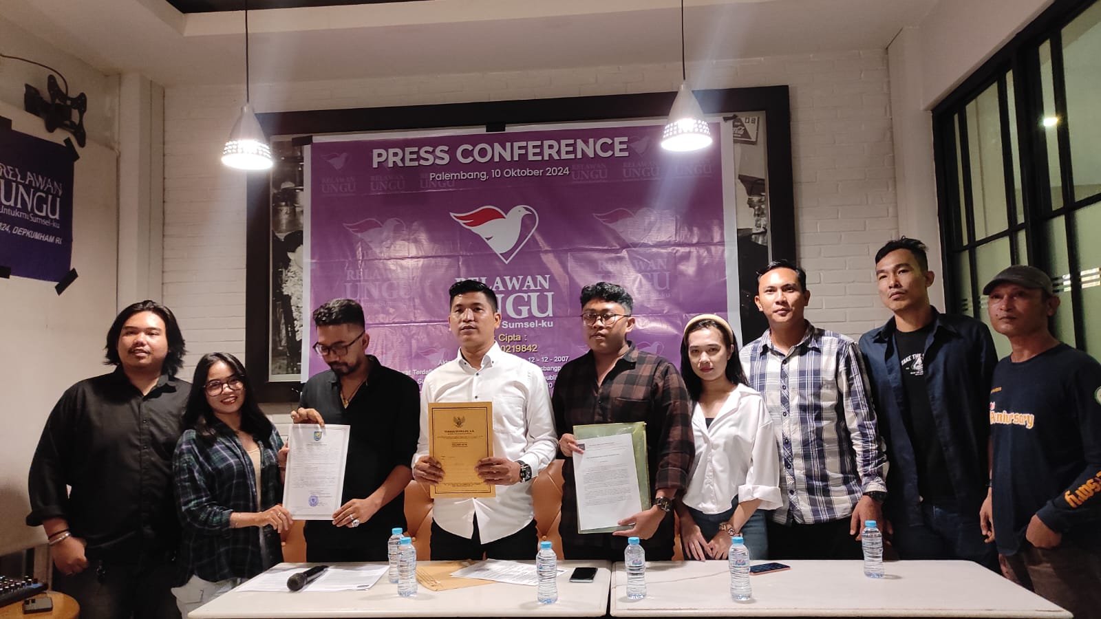 MATTANEWS.CO, PALEMBANG – Relawan Ungu Sumatera Selatan lanjutkan perjuangan bersama Herman Deru. Hal ini diungkapkan oleh Adhi Prawoto, PLT Relawan Ungu Sumatera Selatan, di dalam Konferensi Pers di Monte cafe dan resto Jl KHA Dahlan Palembang, Kamis (10/10/2024) malam.