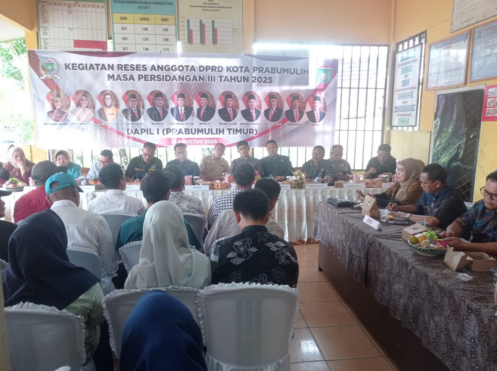 MATTANEWS.CO, PRABUMULIH – Reses Anggota DPRD Prabumulih Dapil I kali ini bertempat Kantor Kelurahan Muara Dua Kecamatan Prabumulih Timur tatap muka bersama masyarakat juga ketua RT/RW Kelurahan setempat, Sabtu (16/8/2025).