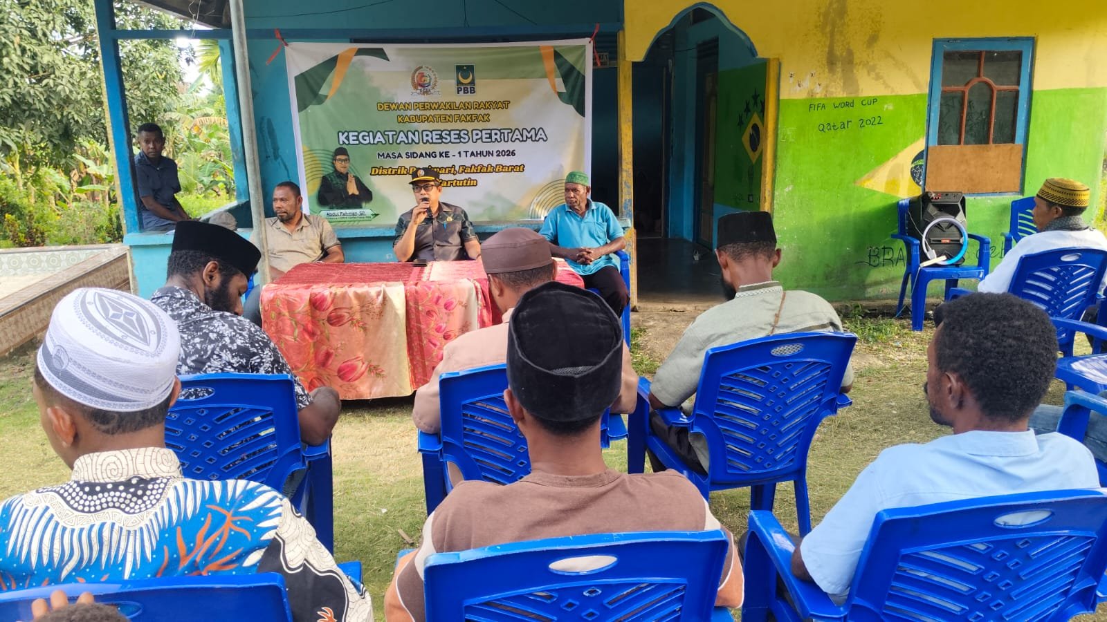 MATTANEWS.CO, FAKFAK – Wakil Ketua Dewan Perwakilan Rakyat Kabupaten (DPRK) Fakfak, Abdul Rahman, turun menyapa warga dengan agenda Reses Pertama Masa Sidang Ke-1 tahun 2026,pada daerah pemilihan (Dapil Dua), Distrik Wartutin, Senin (9/3/2026).