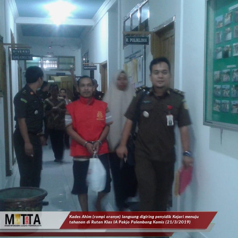 Kades langsung digiring penyidik Kejari menuju Palembang, untuk ditahan di Rutan Klas IA Pakjo Palembang. Bahkan, dengan penahanan tersebut, Ahim akan menjalani sidang kasusnya dalam waktu dekat di PN Klas IA Khusus Tipikor Palembang.
