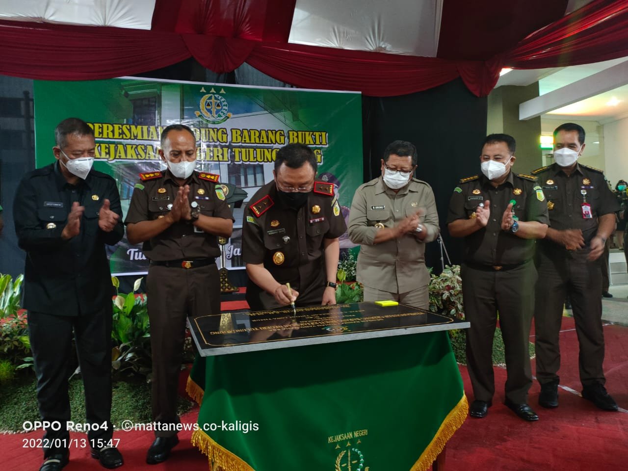 Kajati Jawa Timur Dr. Mohamad Dofir, S.H., M.H., saat menandatangani prasasti peresmian Gedung BB, Kamis (13/1) Foto: Ferry Kaligis/mattanews.co