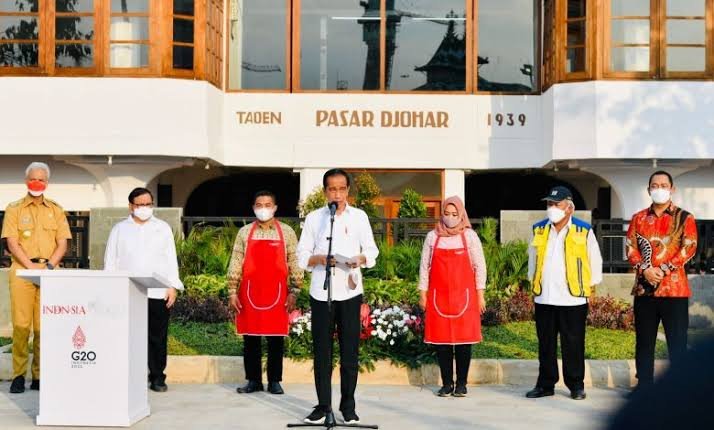 MATTANEWS.CO, JAKARTA– Presiden Joko Widodo meresmikan Pasar Johar di Kota Semarang, Provinsi Jawa Tengah, pada Rabu, 5 Januari 2022. Pasar Johar yang diresmikan tersebut terdiri atas Pasar Johar Utara, Pasar Johar Tengah, Pasar Johar Selatan, dan Pasar Kanjengan.