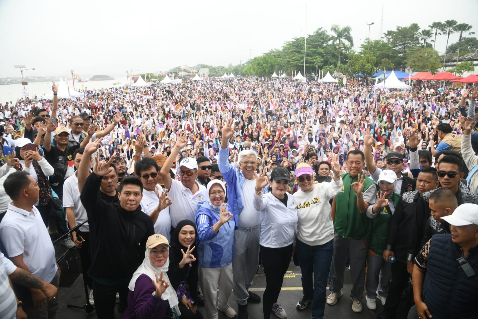 MATTANEWS.CO, PALEMBANG – Ribuan masyarakat Palembang memenuhi Benteng Kuota Besak (BKB), dalam rangka senam bersama dan acara pengukuhan Tim Relawan Ungu For Matahati (Mawardi Yahya – RA Anita Noeringhati).