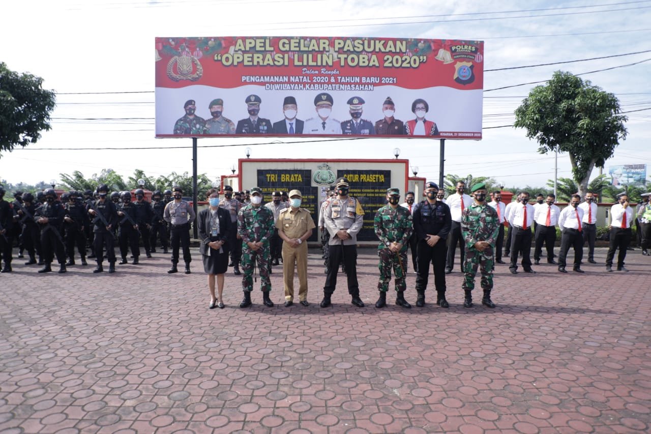 ASAHAN, Mattanews.co – Dalam rangka Pengamanan Natal 2020 dan Tahun Baru (Nataru) 2021 di Kabupaten Asahan Polres Asahan, menggelar apel gelar pasukan Operasi Lilin Toba 2020, di Halaman Polres Asahan, Senin (21/12/2020).
