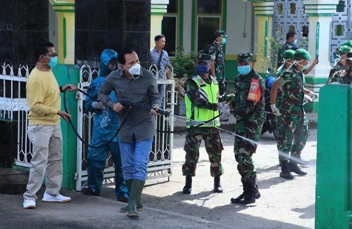 Tempat ibadah dari semua pemeluk Agama juga tak luput dari semprotan disinfektan.