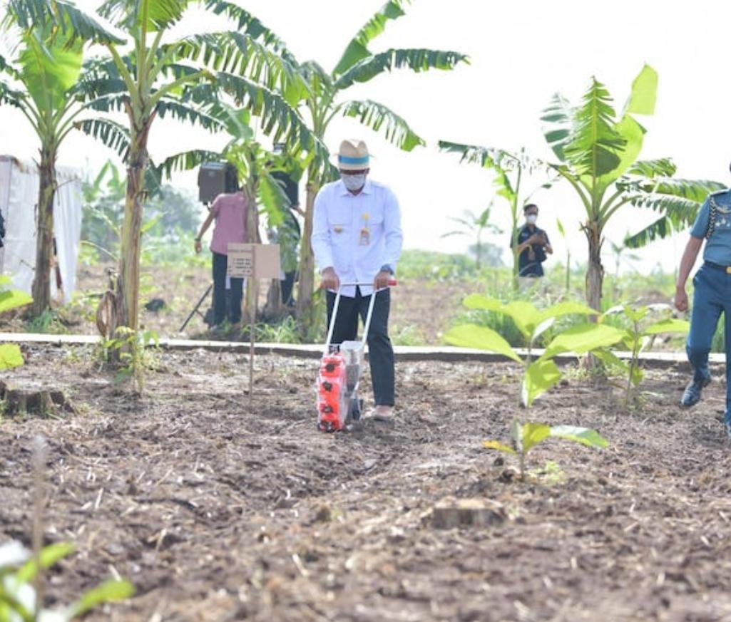 “Kemudian polanya tanam sisip di antara jagung ditanami kedelai termasuk tanaman lain Pak, sudah kami siapkan kelapa genjah. Jadi umur dua setengah tahun sudah berbuah,” ujar Dirjen Tanaman Pangan Kementerian Pertanian RI Suwandi.