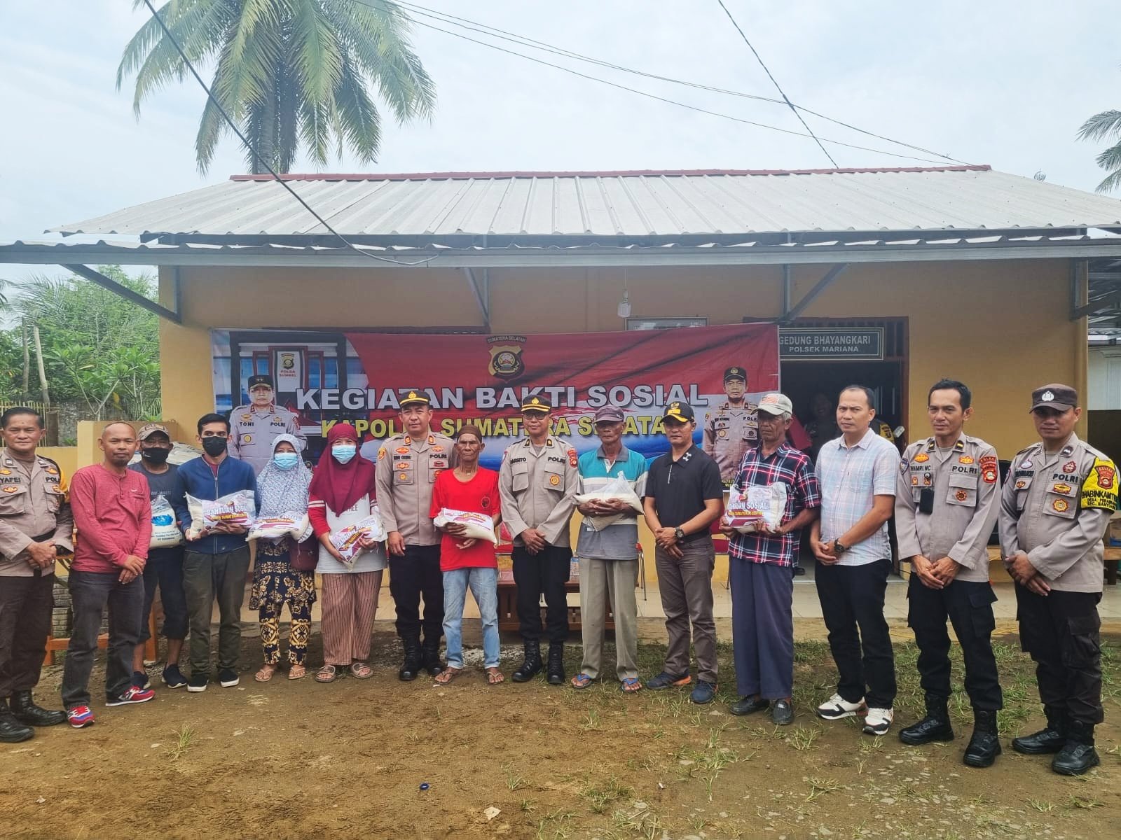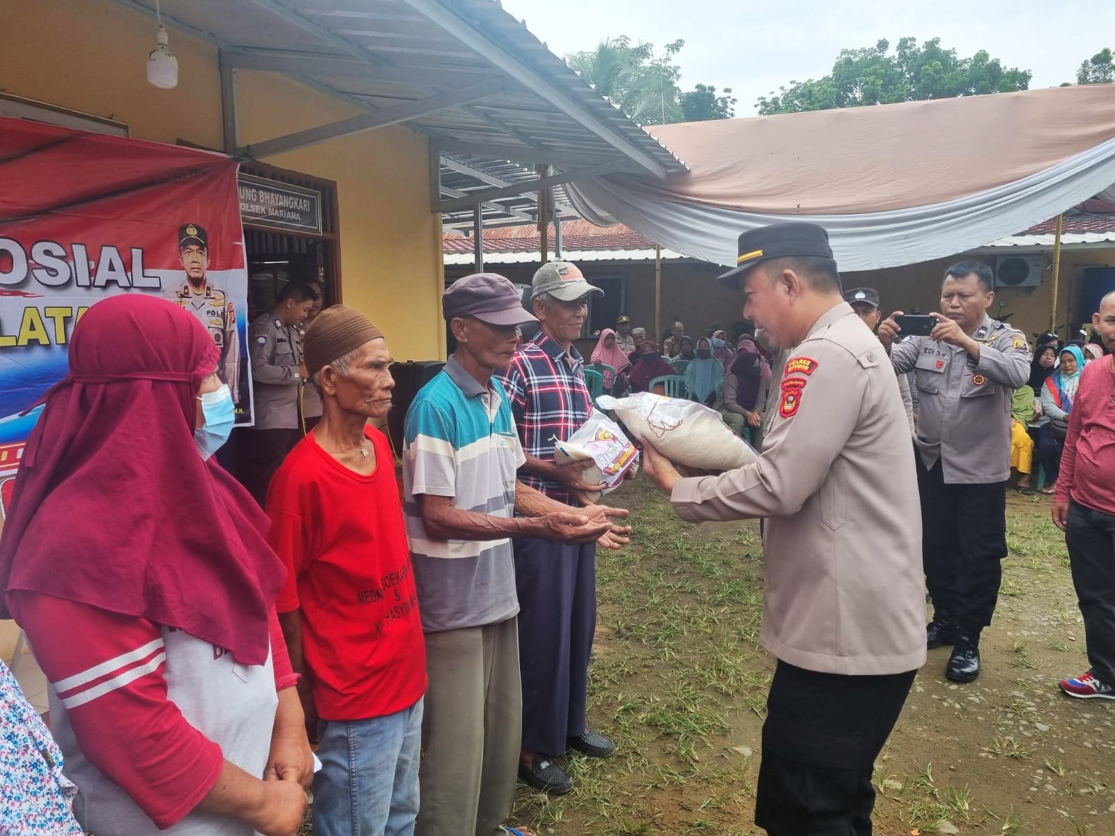MATTANEWS.CO, BANYUASIN – Untuk meringankan bebas masyarakat yang terdampak atas kenaikan harga BBM, Kapolda Sumsel melalui Polsek Mariana membagikan 200 paket beras, untuk masyarakat Kampung Sambirejo, Kelurahan Mariana, Kecamatan Banyuasin I, Kabupaten Banyuasin pada ‘Jumat Barokah’ di Polsek Mariana, Jumat (23/9/2022).