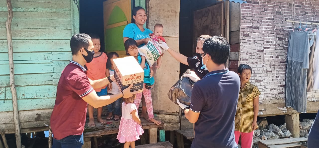 Pembagian beras dan sembako yang dibagikan anggota secara door to door ke rumah warga.