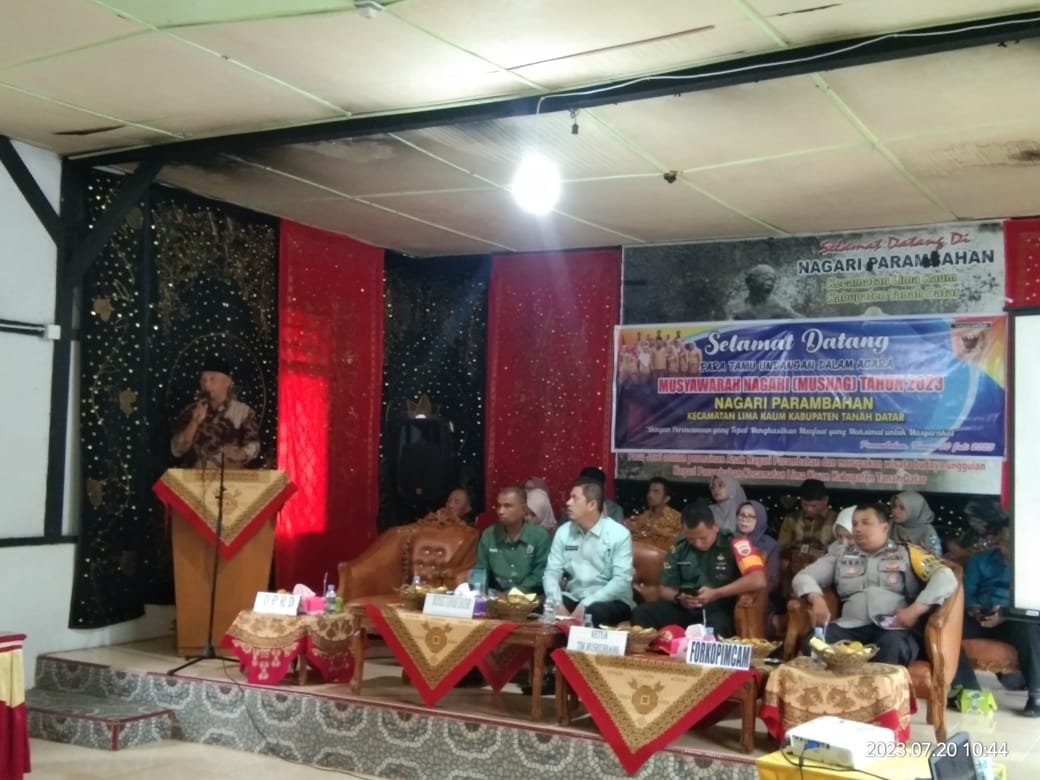 Musnag Parambahan yang di gelar di Aula kantor Wali Nagari, di hadiri oleh Tim Kabupaten, yang diwakili oleh Camat, Lima Kaum, Ikrar Fahlefi, Wali Nagari Parambahan Robi Yasdi, Juga dihadiri oleh mantan Bupati Tanah Datar, Zuldafri Darma dan tokoh masyarakat lainya.