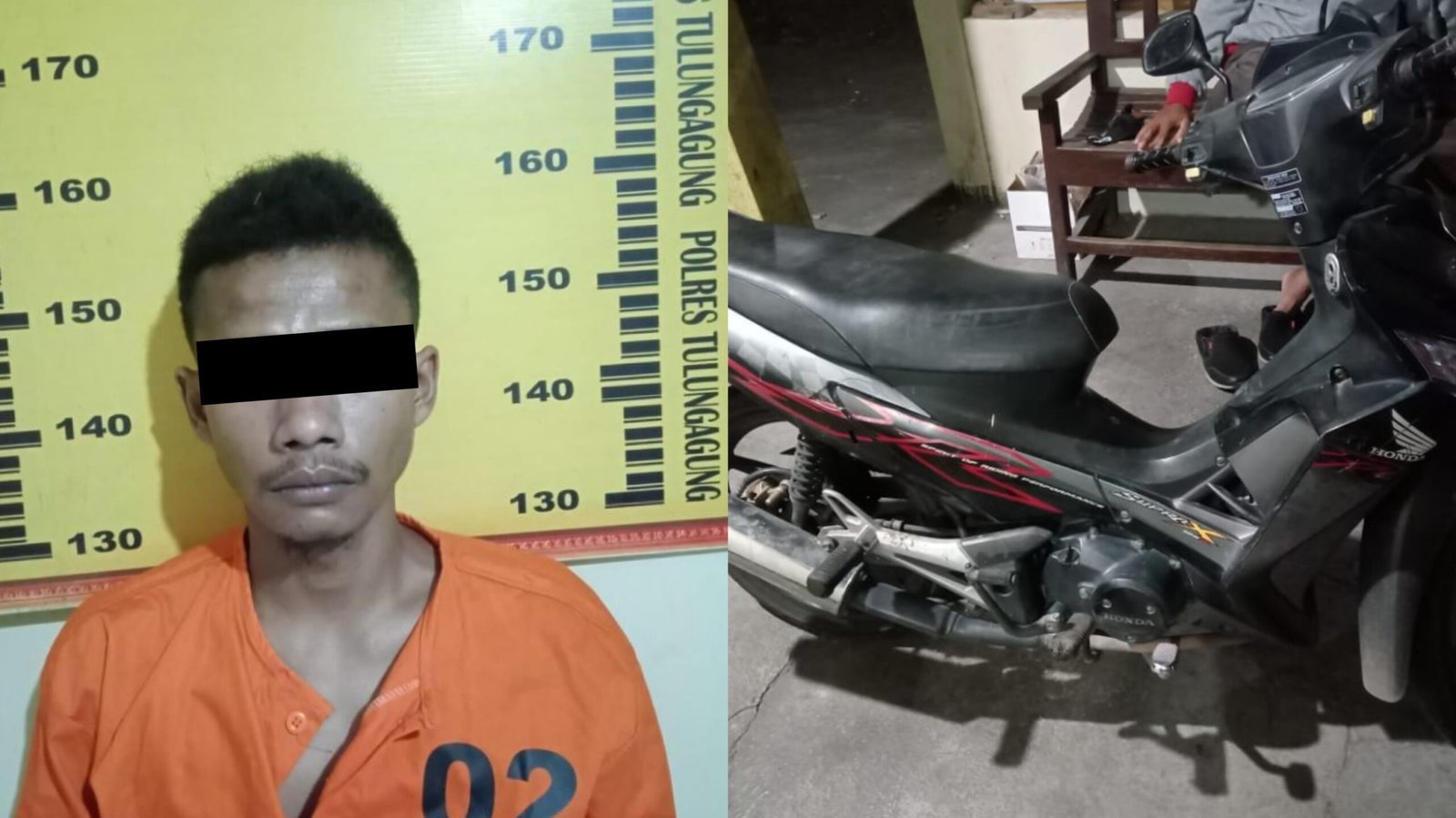 “Dilihat ciri-ciri sepeda motor tersebut sepeda motor jenis honda Supra 125 tahun 2009 warna Hitam dengan Nopol AG 6740 TL, Nomor kendaraan MHIJB91189K661975, dan Nomor mesin JB91E1659294 adalah miliknya, segera pelaku langsung diamankan dibantu warga,” ujarnya.