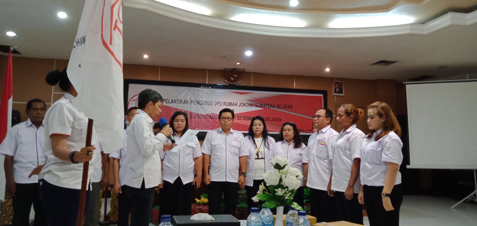 PALEMBANG, Mattanews.co – Pengurus Dewan Pimpinan Daerah (DPD) Rumah Jokowi Sumsel resmi dilantik ketua umum nya Yongki Jonacta Yani, di ballroom hotel Swarna Dwipa, Jumat (21/02/2020). Acara tersebut berlangsung lancar dengan mengusung misi gerakan kebaikan bagi sesama.