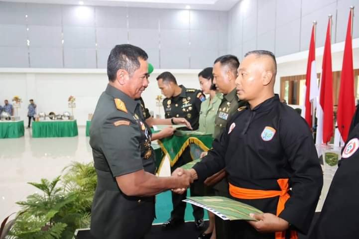 MATTANEWS.CO, KUBU RAYA – Panglima Kodam XII/Tanjungpura, Mayjen TNI Iwan Setiawan, S.E., M.M., berikan apresiasi kepada kontingen pencak silat Kodam XII/Tpr yang telah menunjukkan prestasi dengan berhasil menjadi juara umum kedua ajang Kejurnas Pencak Silat Piala Kasad ke-1 tahun 2023. Acara berlangsung di Aula Sudirman, Makodam XII/Tpr. Rabu (31/5).