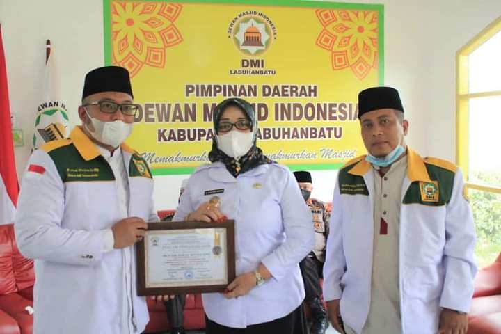 Acara diakhiri dengan pemberian piagam penghargaan oleh DMI Labuhanbatu, kepada Bripka Didik Irawan, yang berhasil menjadi Inisiator pembangunan Masjid Al Ikhlas di Linggatiga Sigambal.