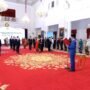 Turut mendampingi Presiden dalam pelantikan tersebut yakni Ibu Negara Iriana Joko Widodo dan Wakil Presiden Ma’ruf Amin beserta Wury Ma’ruf Amin.