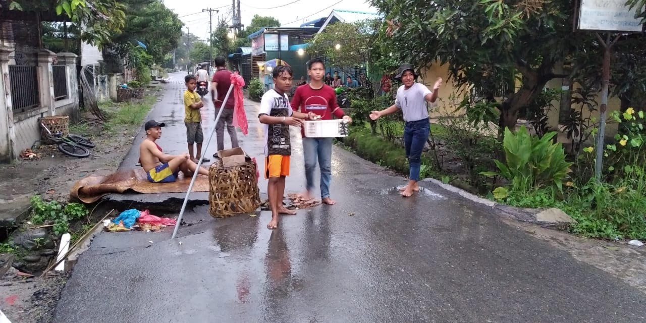 Menurutnya jalan tersebut sampai retak dan hampir roboh. Karena Banjir, akibat curah hujan tinggi yang terjadi beberapa hari lalu.
