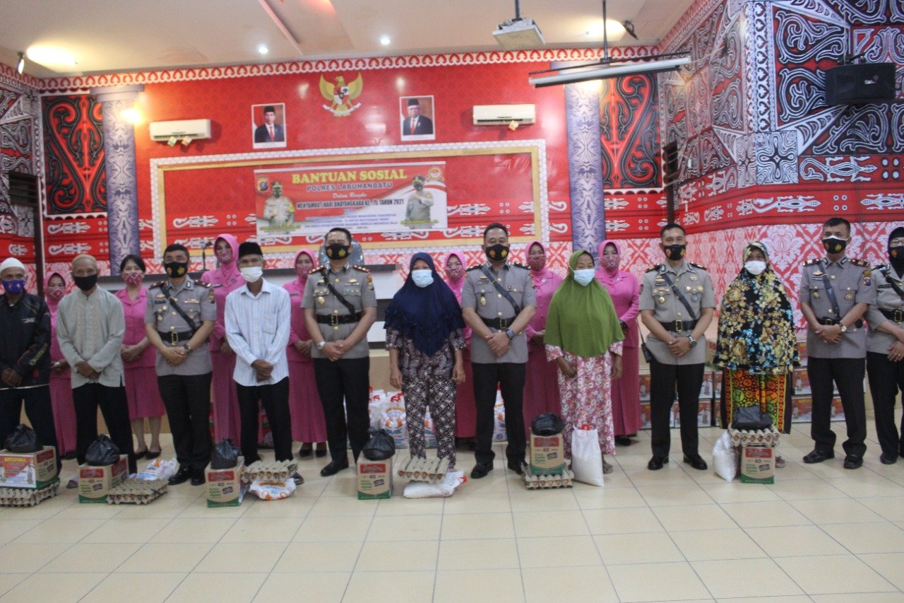 Mengingat masih dalam keadaan pandemi Covid-19, bantuan yang diberikan Polres Labuhanbatu berupa Mie Instan, telur, beras minyak makan, gula pasir dan bubuk teh kepada masyarakat di aula Yanfiter Polres Labuhanbatu, Selasa (29/6/2021).