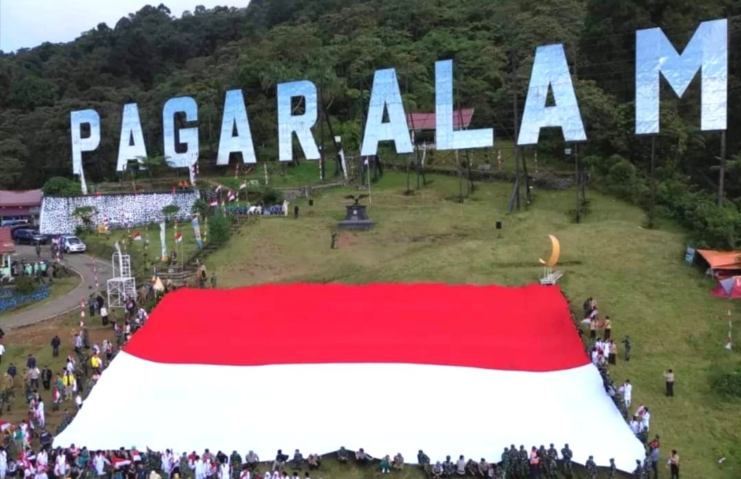 Sambut HUT RI ke-79, Merah Putih Berkibar di Tugu Rimau Gunung Dempo Kota Pagar Alam