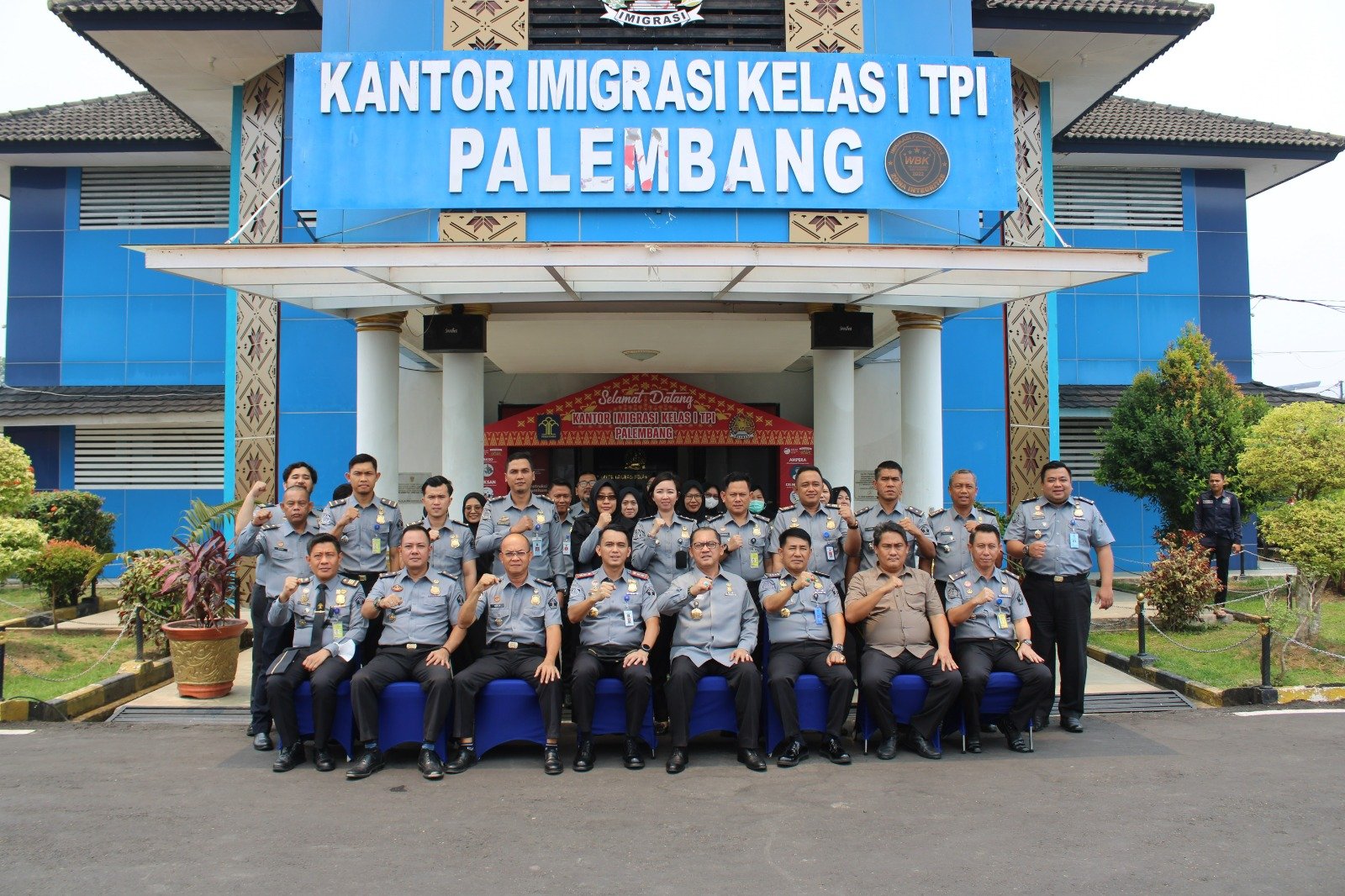 MATTANEWS.CO, PALEMBANG – Kepala Kantor Imigrasi Kelas I TPI Palembang Kemenkumham Sumsel, Mohammad Ridwan beserta jajaran menerima Kunjungan Kerja pertama Kepala Divisi Keimigrasian Kantor Wilayah Kementerian Hukum dan HAM Sumatera Selatan, Filianto Akbar, di Kantor Imigrasi Kelas I TPI Palembang, Selasa (17/10/2023).