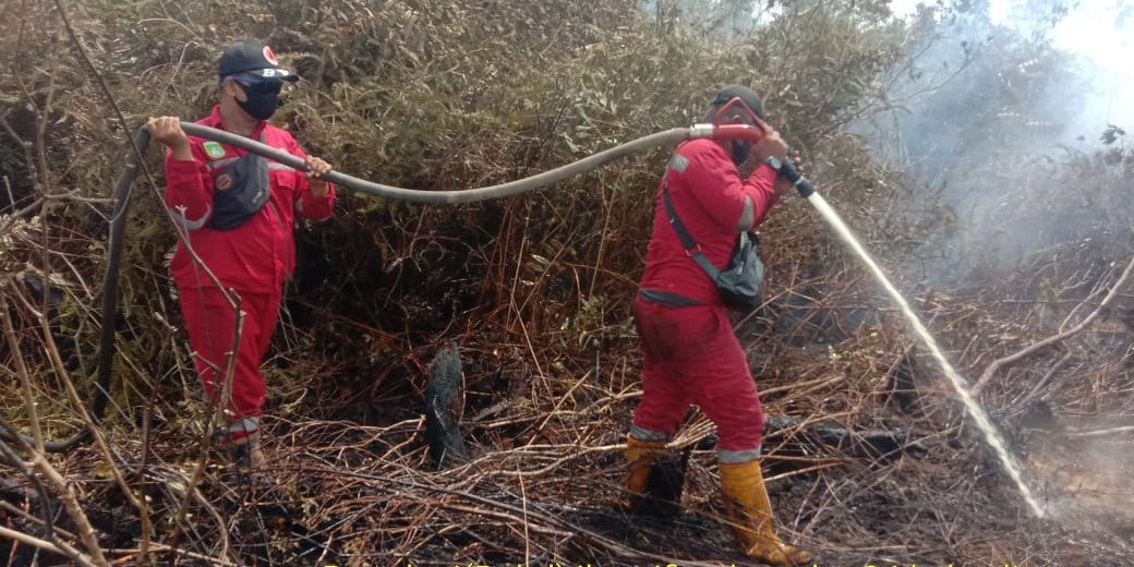 JAKARTA, Mattanews.co– Tim Satuan Tugas Darat Kebakaran Hutan dan Lahan Kota Dumai melakukan pemadaman dan pendinginan di lahan gambut pada Senin kemarin (29/6/2020). Luas lahan terbakar mencapai 3 hektar yang berlokasi di Kelurahan Pelintung, Kecamatan Medang Kampai, Dumai, Riau.