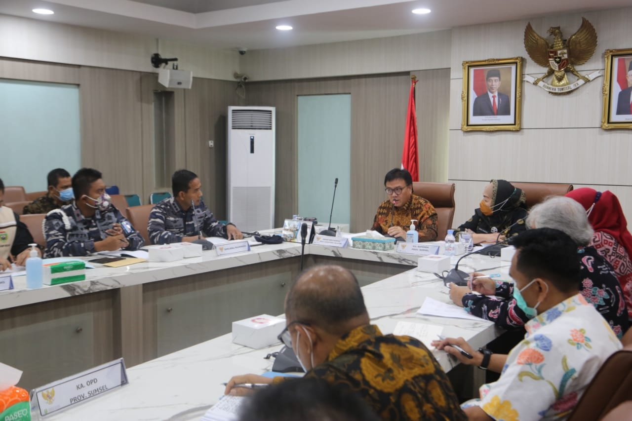 Sekertaris Daerah (Sekda) Sumsel, H. Nasrun Umar saat memimpin rapat Pembahasan Rencana Aksi Satgas PBBKB pada perairan/laut di wilayah Sumsel, di ruang rapat Bina Praja Kantor Gubernur Palembang, Kamis (05/03/2021) siang menyebut upaya ini dilakukan gina mengejar optimalisasi Pendapatan Asli Daerah (PAD) 2021.