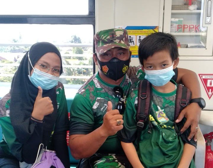 Ini terlihat saat anak-anak berada di dalam LRT ada yang berbincang-bincang ada juga yang manja duduk di pangkuan anggota Satgas.