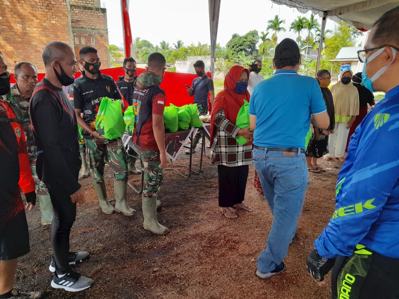 Sempat istirahat sebentar melepas lelah usai mengayuh sepeda yang memakan jarak tempuh yang cukup jauh, anggota Satgas TMMD membagikan paket sembako ke warga Kampung Jawi yang kurang mampu.