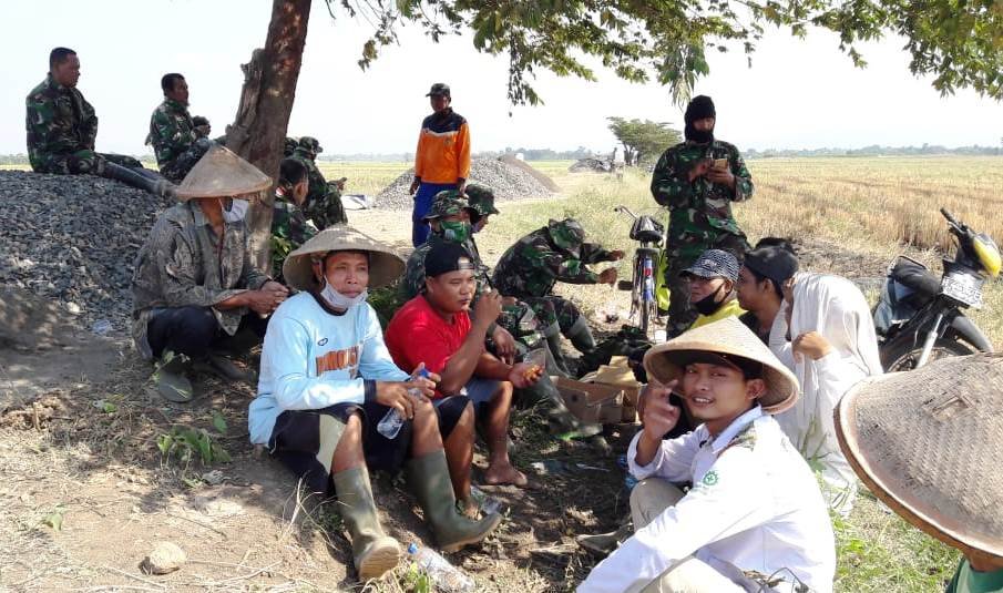 Hal ini dapat kita lihat dengan nyata dan sangat jelas, rasa solidaritas antara TNI dan warga saat sedang istirahat, saling berbagi makanan, minuman dan duduk bersama dan tetap menjaga jarak sesuai protokol Kesehatan Covid-19.
