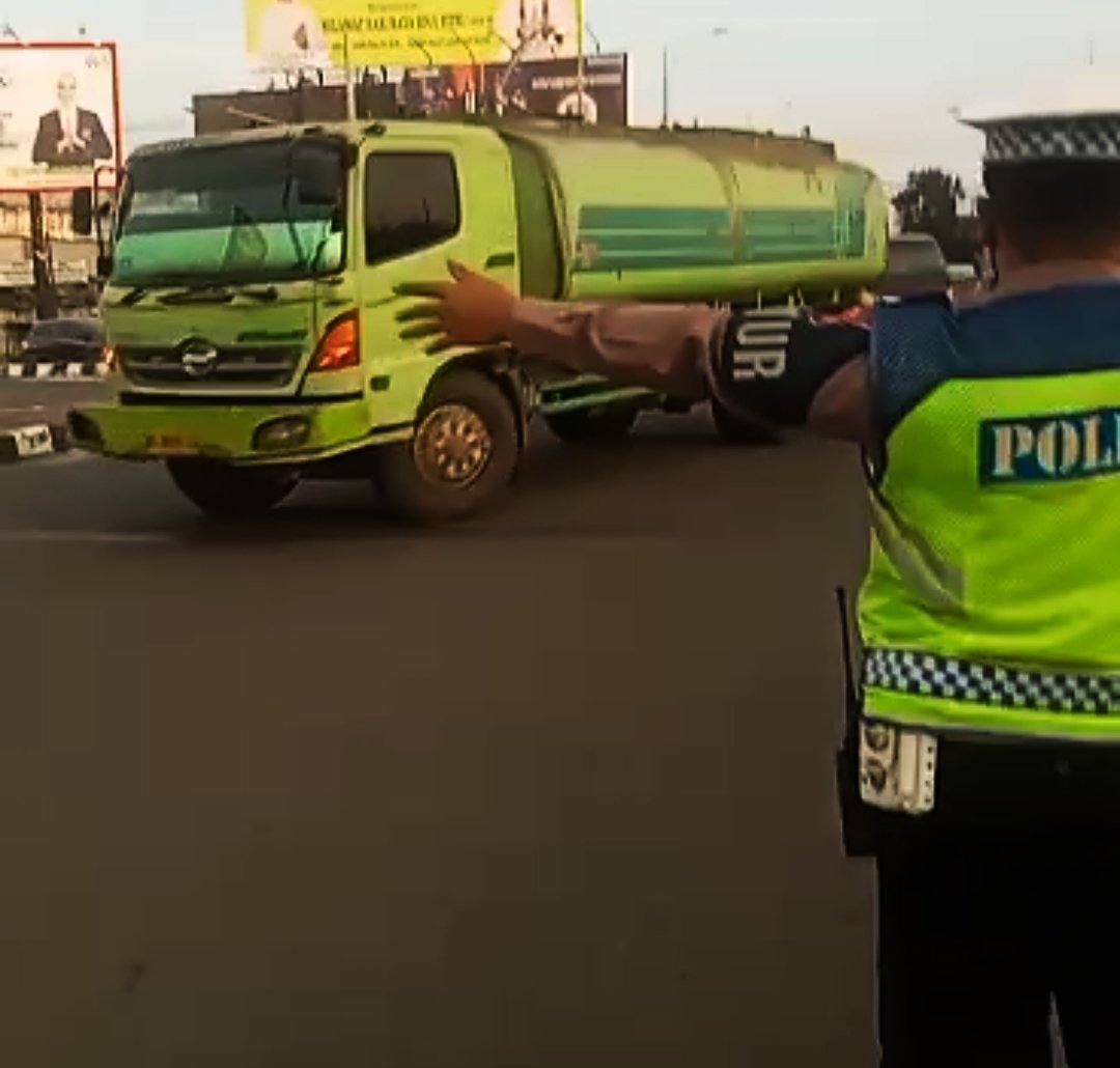 Satlantas Polrestabes Palembang Paksa Fuso dan Trailer ‘Putar Balik’