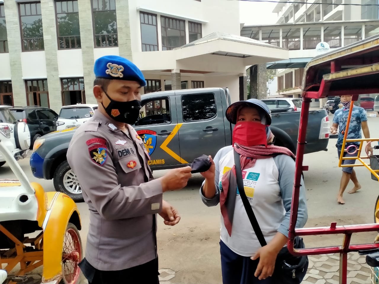 Selain itu, pihaknya juga bersinergi dengan Balawista atau Life Guard Pangandaran anggota TNI di wilayah perairan Sat Pol Air Polres Ciamis. Kasat Pol Air Polres Ciamis AKP Sugianto mengatakan, kegiatan ini dilaksanakan dalam rangka menumbuhkan kesadaran warga khususnya para wisatawan di Pantai Pangandaran agar selalu patuh dan taat menerapkan protokol kesehatan pencegahan Covid-19
