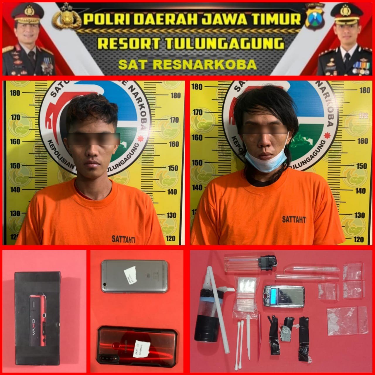Melalui keterangan singkatnya, Kasat Resnarkoba Polres Tulungagung AKP Andri Setya Putra melalui Kasubbag Humas Polres Tulungagung Iptu Tri Sakti Syaiful Hidayat membenarkan penangkapan kedua tersangka diduga pengedar sabu.