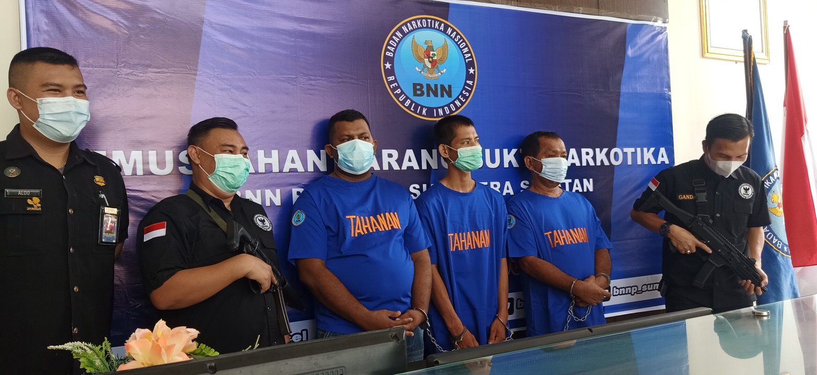 MATTANEWS.CO, PALEMBANG – Penyelidikan anggota BNNP Sumsel selama beberapa hari terakhir membuahkan hasil. Tim pemberantasan BNNP Sumsel ini berhasil menggagalkan lima kilogram sabu asal Riau, di Jalan Lintas Sumatera Palembang – Betung, Terminal Betung, Kabupaten Banyuasin dengan menyeret tiga pelakunya, SB, LK dan SH, Rabu (3/3/2021).