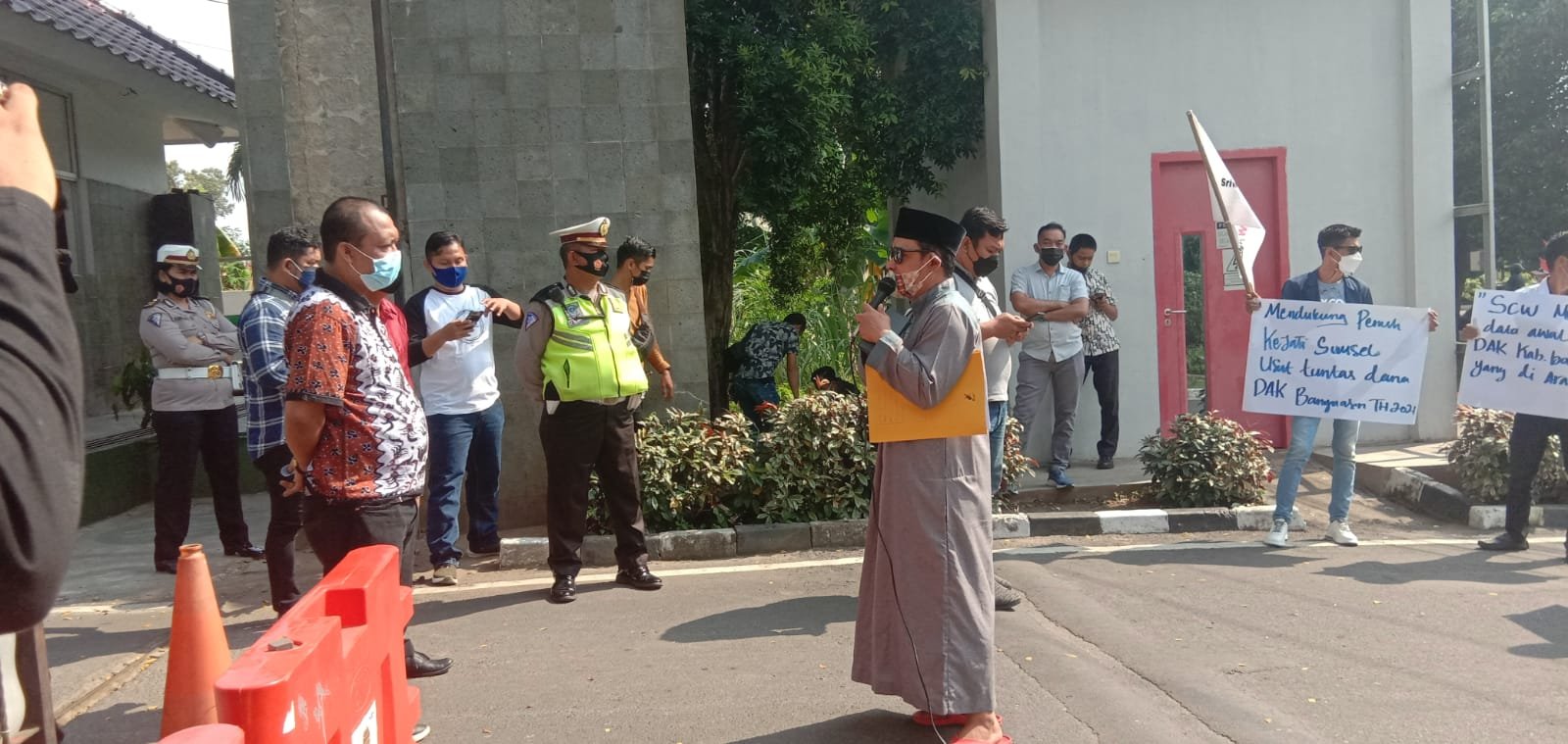MATTANEWS.CO, PALEMBANG – Puluhan massa yang tergabung dari Sriwijaya Coruption Watch (SCW) Sumatera Selatan (Sumsel), menggelar aksi unjukrasa (unras) di Kejaksaan Tinggi (Kejati) Sumsel dan mendukung penuh dalam pemberantasan Korupsi di Sumsel, Jumat (30/7/2021).