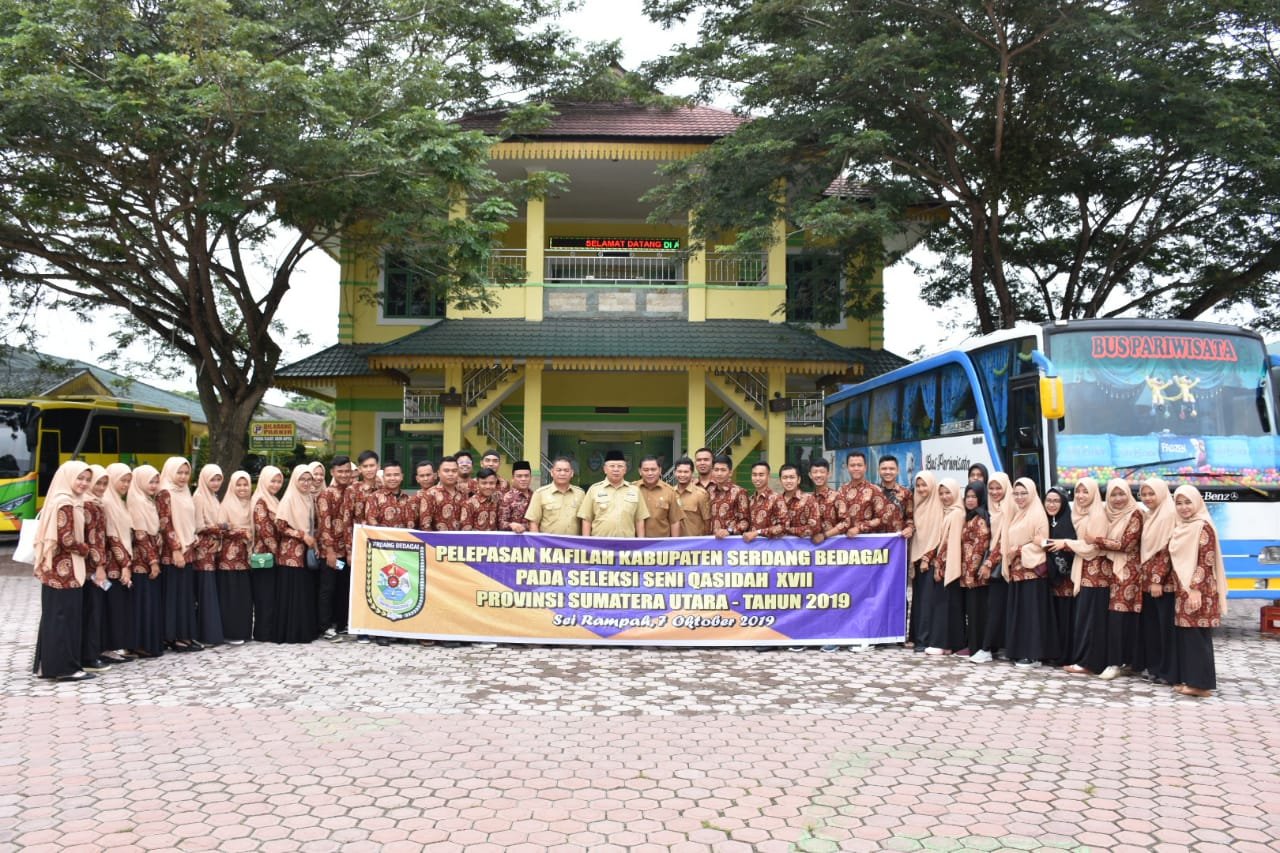 SUMUT, Mattanews.co – Bupati Kabupaten Serdang Bedagai (Sergai) Soekirman melepas 64 Kafilah mengikuti seleksi Qasidah/Nasyid XVII tingkat Provinsi Sumatera Utara di aula T. Rizal Nurdin Komplek Kantor Bupati Kecamatan Sei Rampah, Kabupaten Serdang Bedagai, Senin (07/10/2019).