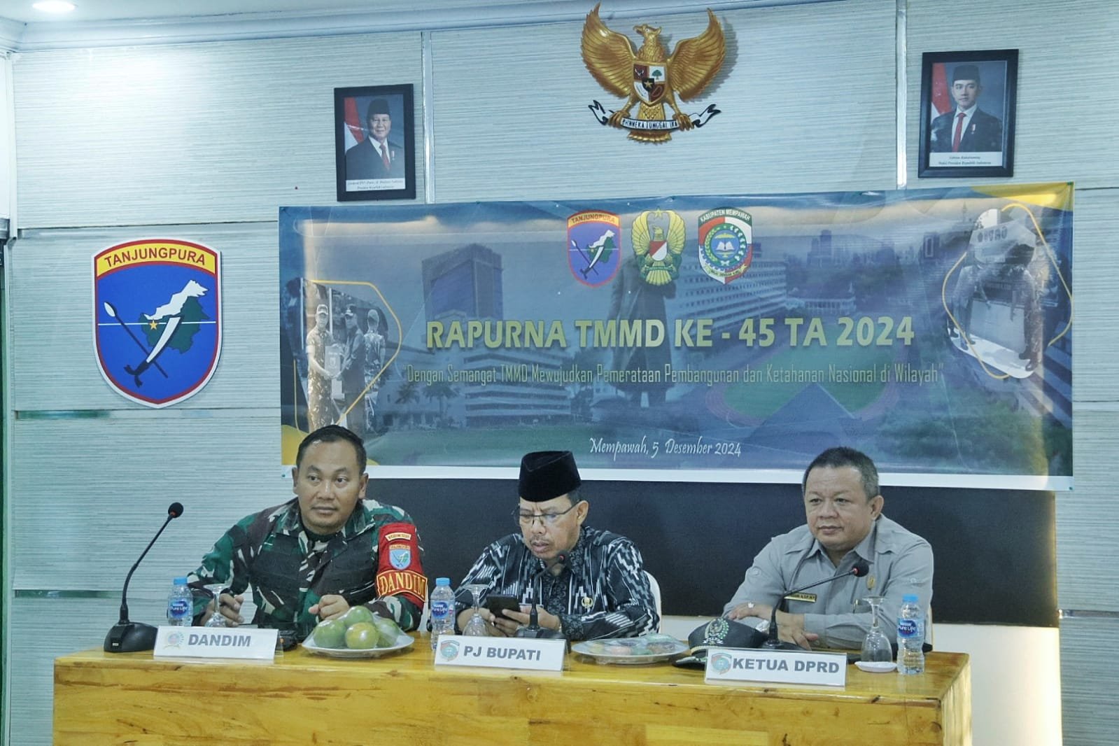 Rapat Rapurna TMMD Ke-45 ini diikuti Pj Bupati Mempawah, Drs H. Ismail MM, Ketua DPRD Safaruddin Astra Sp Mp dan Ketua Bapedda Mempawah Amy Febriyanto diselenggarakan secara serentak di seluruh Kodam se-Indonesia.